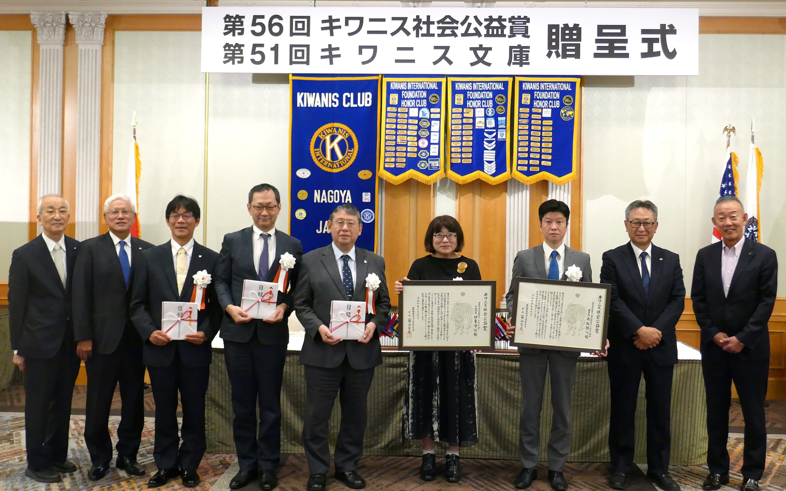 社会公益賞は名古屋キワニスクラブ最大の社会奉仕事業として位置づけられる事業です。『社会公益のために長い間献身的努力を続けている人たちのその功績に敬意を表するとともにその尊い存在を世間に知らしめよう。』という趣旨で毎年贈呈しています。